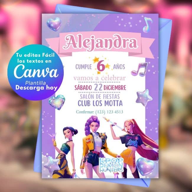 Dale a tu hija una fiesta al ritmo del pop coreano con esta invitación digital lista para personalizar y compartir. Ideal para niñas que aman el brillo, la música y las heroínas KPOP. 🎤✨🎉 Si Prefieres una versión en video mira aquí de las Guerreras KPOP