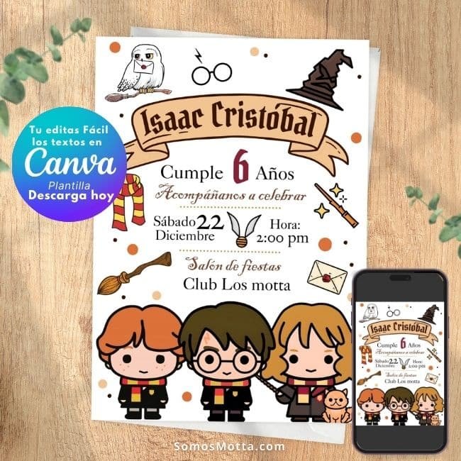 Portada » Tienda » Invitación de Harry Potter Infantil Editable en Canva