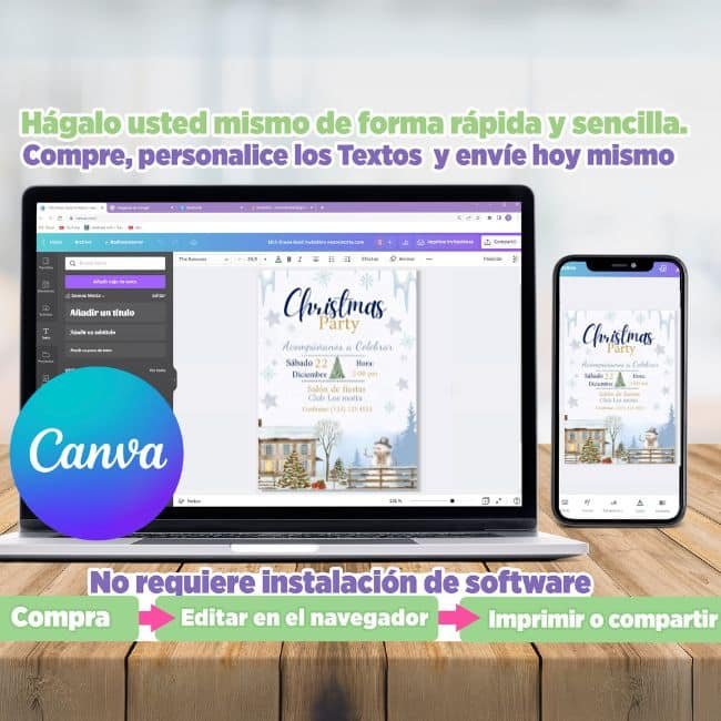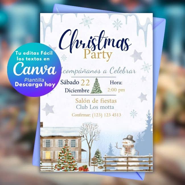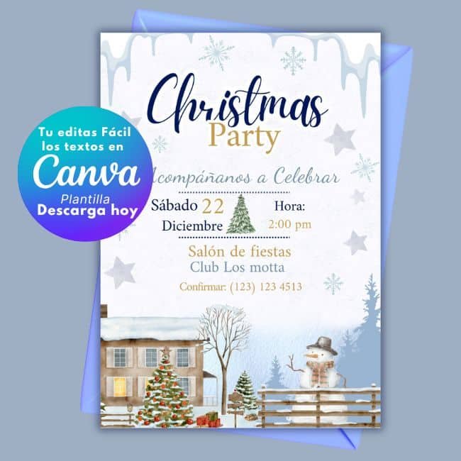 Portada » Tienda » Invitación Fiesta de Navidad para editar en Canva