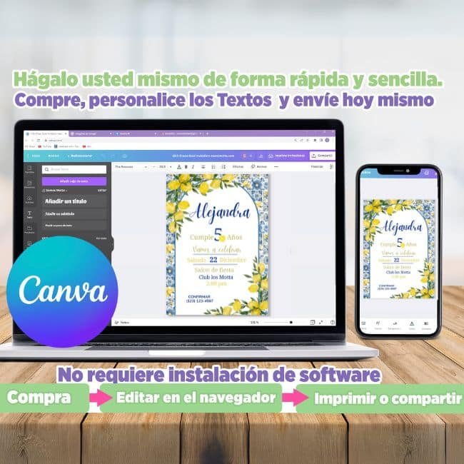 Enlace en canva.com para ser editado por usted. 1 – REALIZA el pedido. 2 – RECIBA de inmediato su enlace. 3 – MODIFICA los datos de su invitación. 4 – DESCARGA Imprima o envíe.