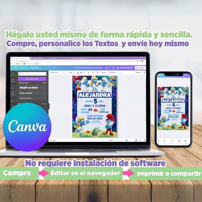Invitación los Pitufos para Editar