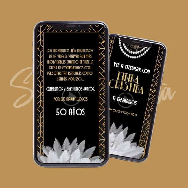 Video Invitación 50 Años Estilo Gatsby (Negro y Oro)