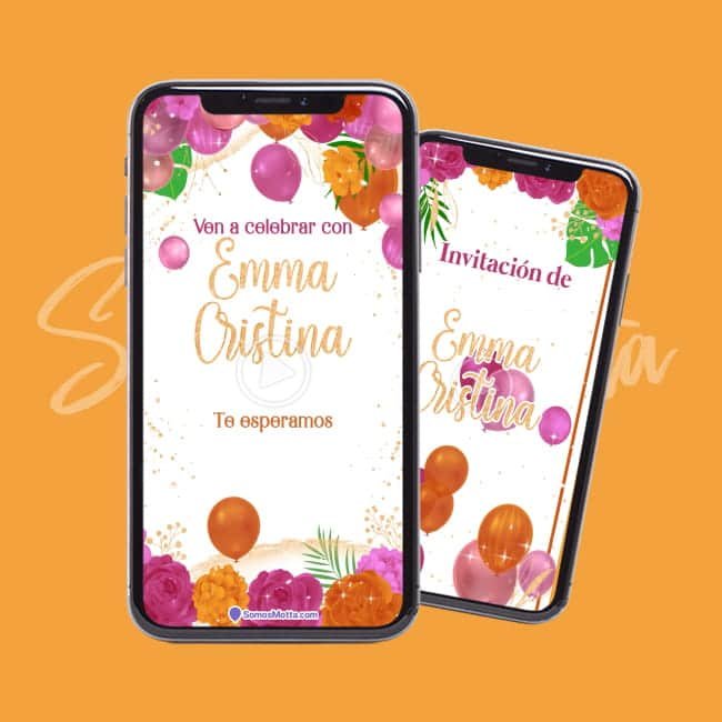 Video Invitación Dama Globos Naranja – Personalizada y Lista