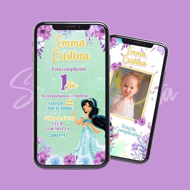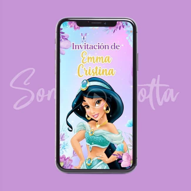 Puedes ver el precio de las invitaciones de cumpleaños animadas y otros motivos. Ideal para celebración fiesta de niña con motivo de mini princesas. Ariel, Pocahontas, Jazmin, Bella, Aurora, Blanca Nieves, Blancanieves, Cenicienta, Mérida, Mulan, Jasmin, Tiana, Rapunzel. Little Disney princesses birthday party. digital invitation Birthday. Cartão de convites de aniversário digital, Carta di invito compleanno digitales. Video invitation for cell phone Mota, diseño, animación y decoración en somosmotta, motta Princesa Jasmín, Aladdín, Agrabah, Genio, Alfombra Mágica, Sultán, Disney Princesas, Rajah, Abu, Jafar, Fiesta Temática, Cumpleaños Infantil, Noches Árabes