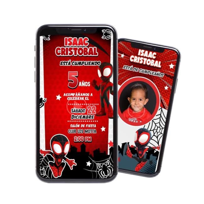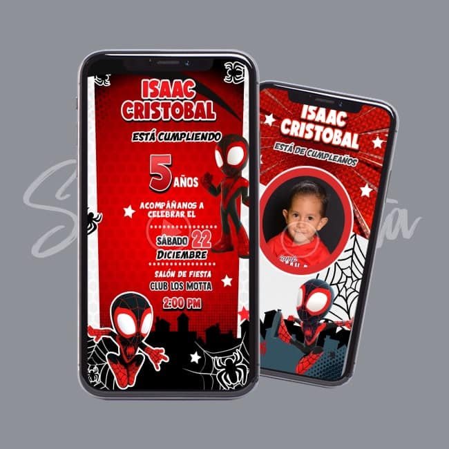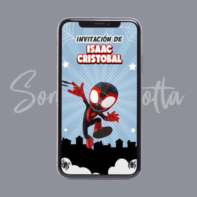 Si deseas mayor información puedes ver información y precio en la página. Ideal para una fiesta de chicos, hijo, sobrino, ahijado, hermanito. tematica Disney Junior – Marvel. The amazing Spider man. Spidey and His Amazing Friends Birthday party digital Invitation. Carta di invito compleanno digitales. Video invitation for cell phone Mota, DISEÑO y DECORACION en somosmotta, motta, SPIN, Spider-Man, héroe arácnido, Peter Parker, Miles Morales, superhéroes, Marvel, invitación digital, invitación personalizada, invitación animada, fiesta infantil, decoración temática SPIN, tarjeta animada SPIN