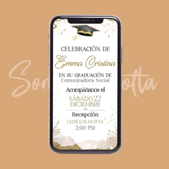 Tus invitados les va a encantar esta tarjeta de VIDEO INVITACIÓN PARA GRADUACIÓN, En somosmotta.com la personalizamos para ti con tus datos.