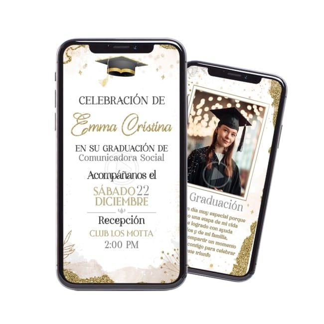Nuestra Tarjeta de Invitación de Graduación no es solo una invitación, es un recuerdo. Diseñada profesionalmente, combina imágenes y música que resaltan tu logro y establece el tono para un evento inolvidable de promoción