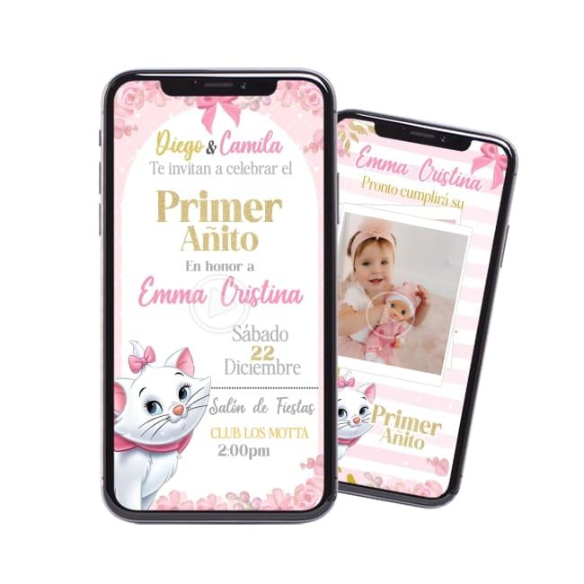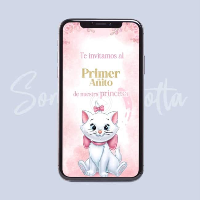 Gata Marie, Aristogatos, Los Aristogatos Disney, Marie Disney, Cumpleaños Bebé, Primer Año, Invitación Animada, Fiesta Infantil, Cumpleaños Princesa, Cumpleaños Rosa, Invitación Digital, Fiesta Temática, Cumpleaños Niña, Invitación Marie Aristogatos, Cumpleaños Temático Aristogatos
