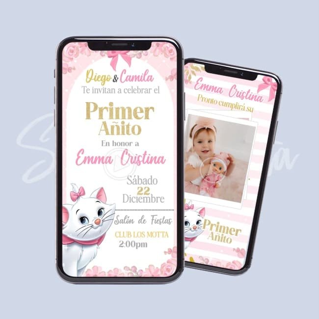 ¿Buscas una Video Invitación Primer Año Gata Marie Aristogatos?